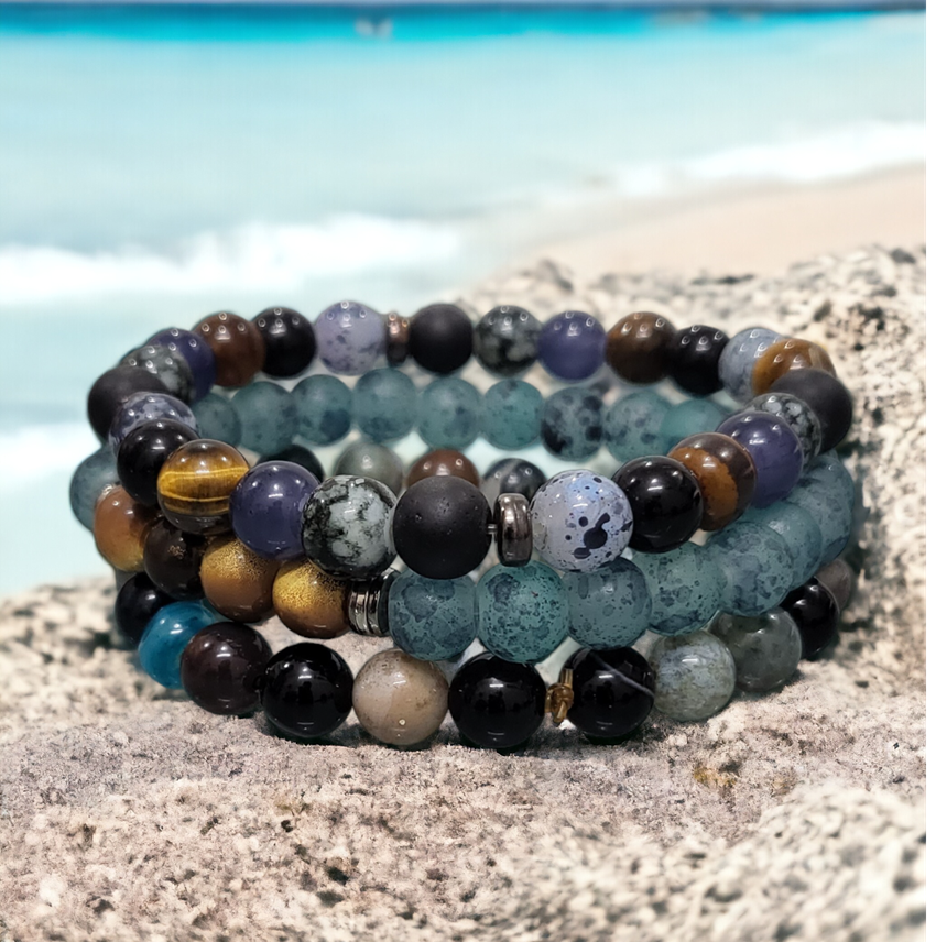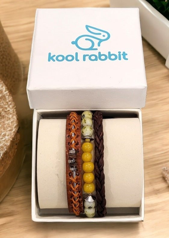 Discover our fashionable Men's sets featuring bracelet bundles, created with premium leather and embellished with distinctive beads. Enhance any attire, formal or casual, with this ideal addition. Trendy and resilient, these bracelets bring a touch of personality to your wrist without compromising on comfort.