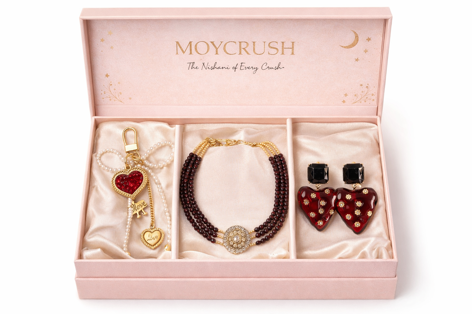 Elevate your Valentine's Day gift-giving with the Moycrush Collection, featuring a stunning necklace, elegant earrings, and a chic bracelet. This beautifully coordinated set is designed to add a touch of romance and sparkle to any outfit, making it the perfect surprise for that special someone. Crafted with care and attention to detail, each piece complements the others flawlessly, ensuring your loved one feels cherished and stylish. Don't miss out on this special collection—make this Valentine's Day unforgettable!