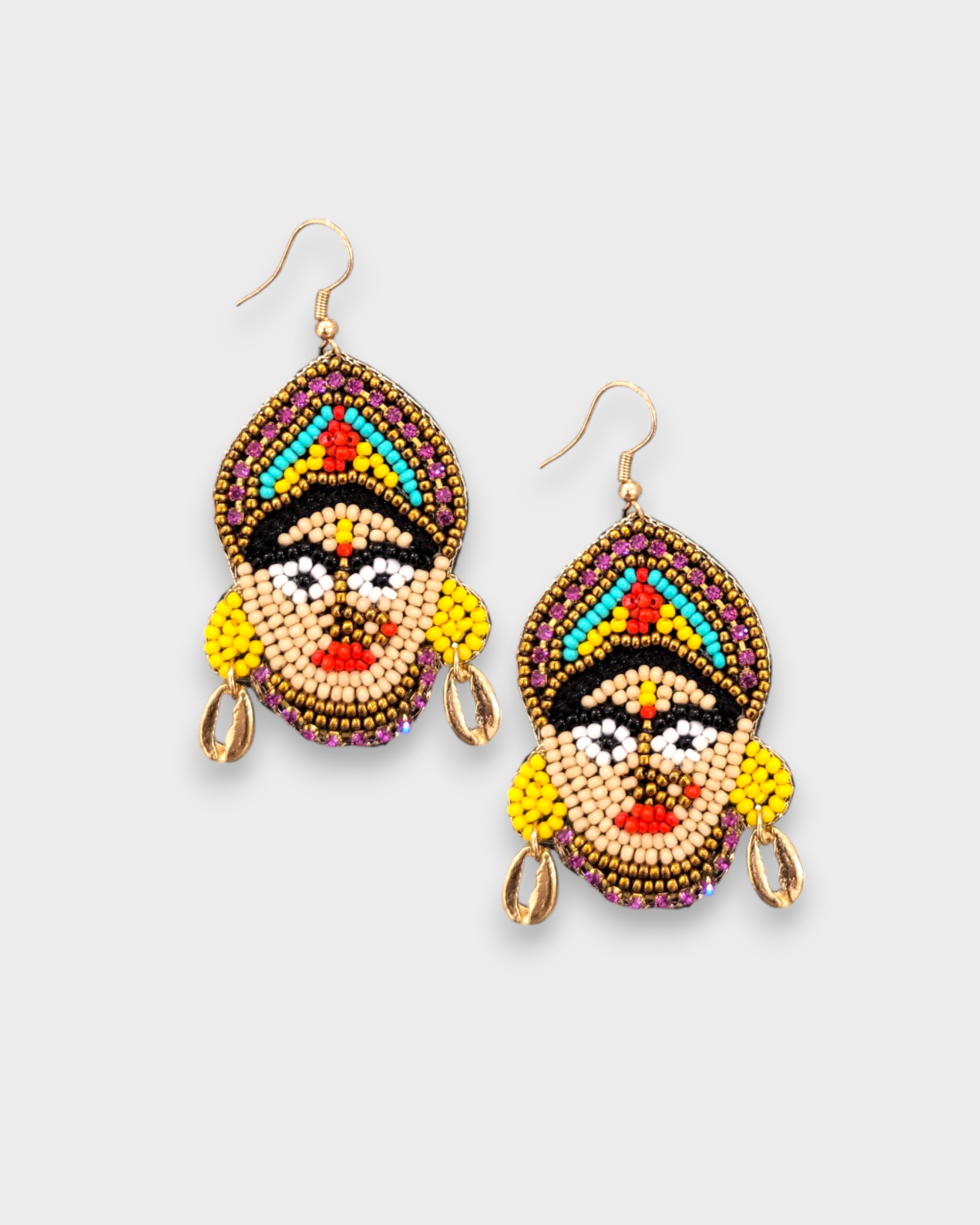 These unique earrings feature a stunning design showcasing a Goddess's face, adding a touch of elegance and personality to any outfit. Perfect for making a statement, they blend art and fashion effortlessly, making them a must-have accessory for any jewelry lover.
