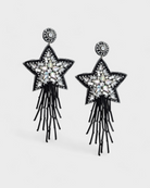 Elevate your style with these stunning black and white star earrings featuring playful fringe. Perfect for adding a touch of whimsy to any outfit, these earrings are lightweight and comfortable, making them ideal for all-day wear. Whether you're dressing up for a night out or adding flair to your everyday look, these earrings are sure to turn heads and spark conversations.