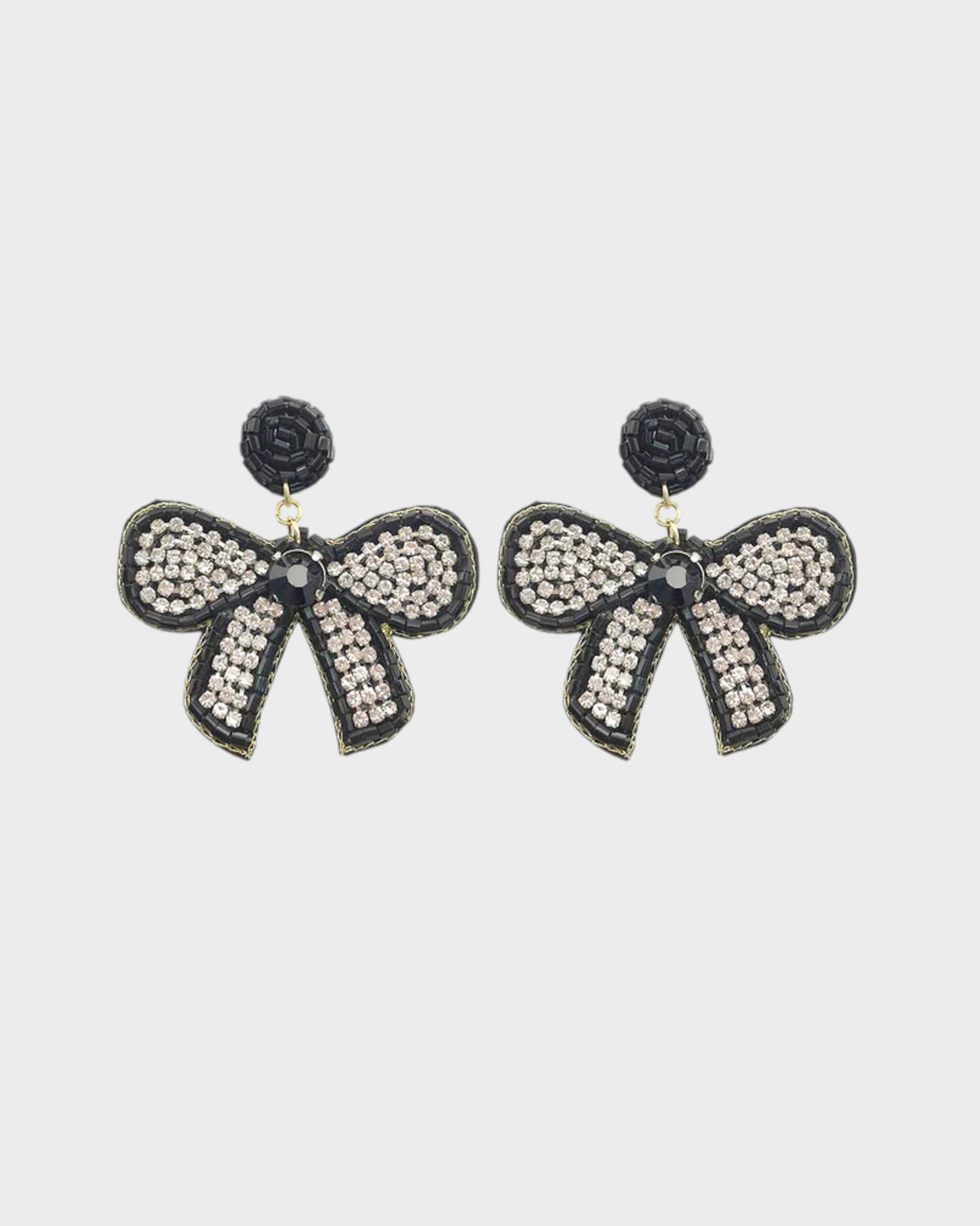 Crafted from a delightful blend of silver rhinestones chain and buggle beads, these charming bow earrings add a playful yet chic touch to any outfit. Their unique flair stands out while remaining versatile, making them perfect for dressing up or down. Whether you're going to a casual brunch or a night out, these earrings are sure to become your go-to accessory!