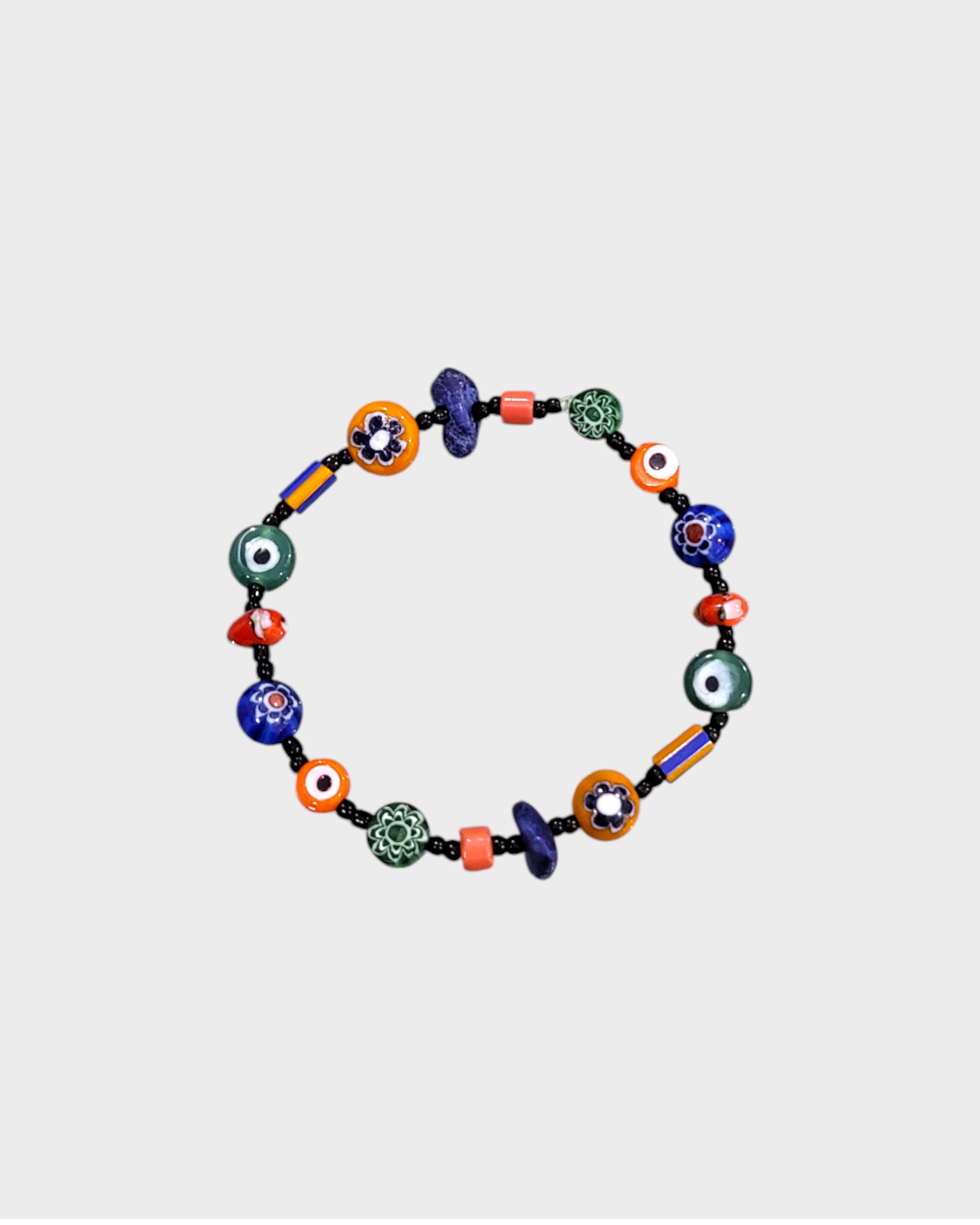 This vibrant bracelet features a playful mix of colorful beads, perfectly complemented by a striking black and orange design. It's a fun accessory that adds a pop of color to any outfit, making it ideal for both casual and festive occasions. Lightweight and comfortable, this bracelet is perfect for stacking or wearing solo to showcase its unique charm.