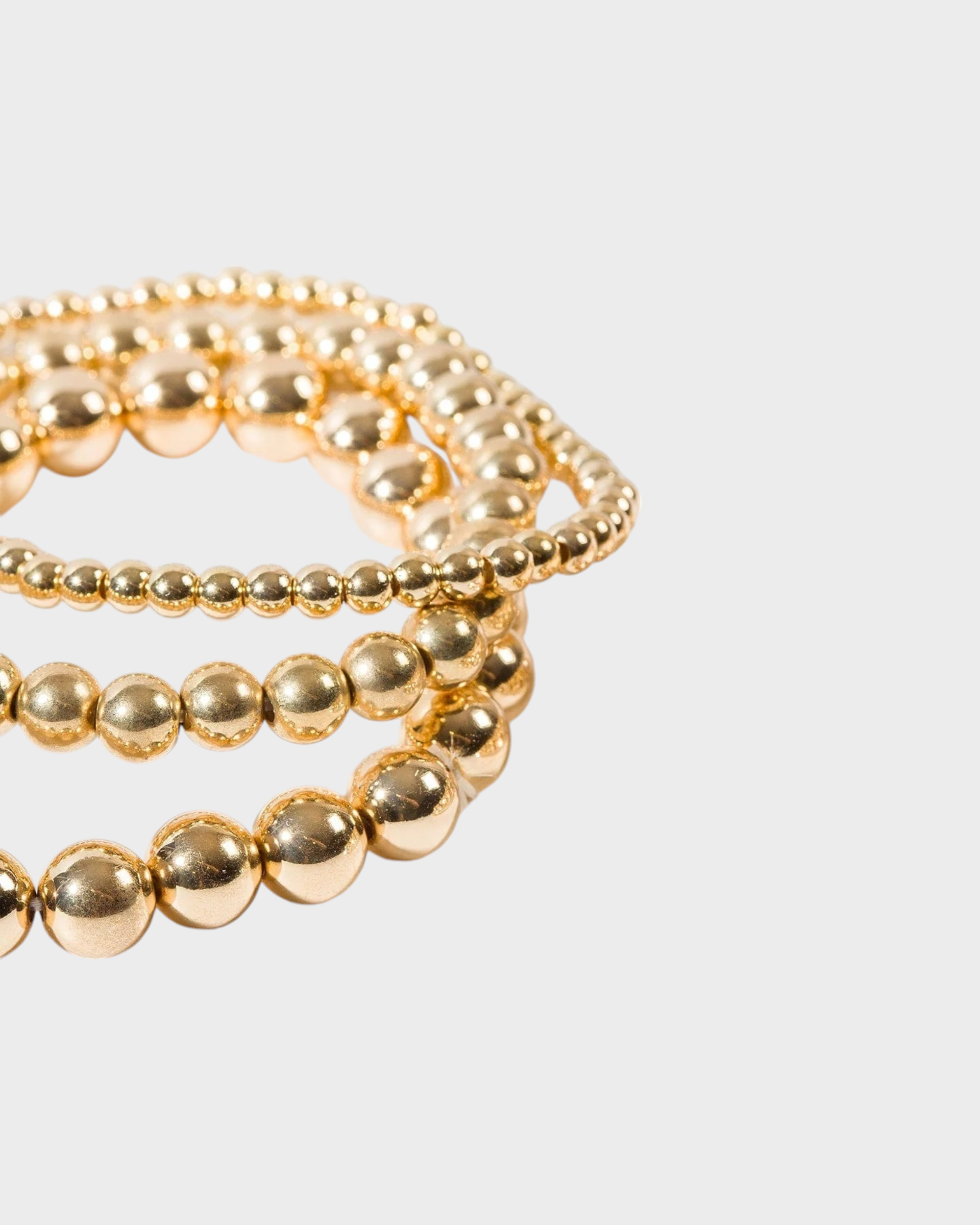 Expertly crafted with a shiny gold finish, this set of 3 beaded bracelets offers a touch of elegance and versatility to any outfit. The stretch design allows for a comfortable, easy fit, making these bracelets perfect for everyday wear or special occasions. Enhance your style with these timeless accessories.