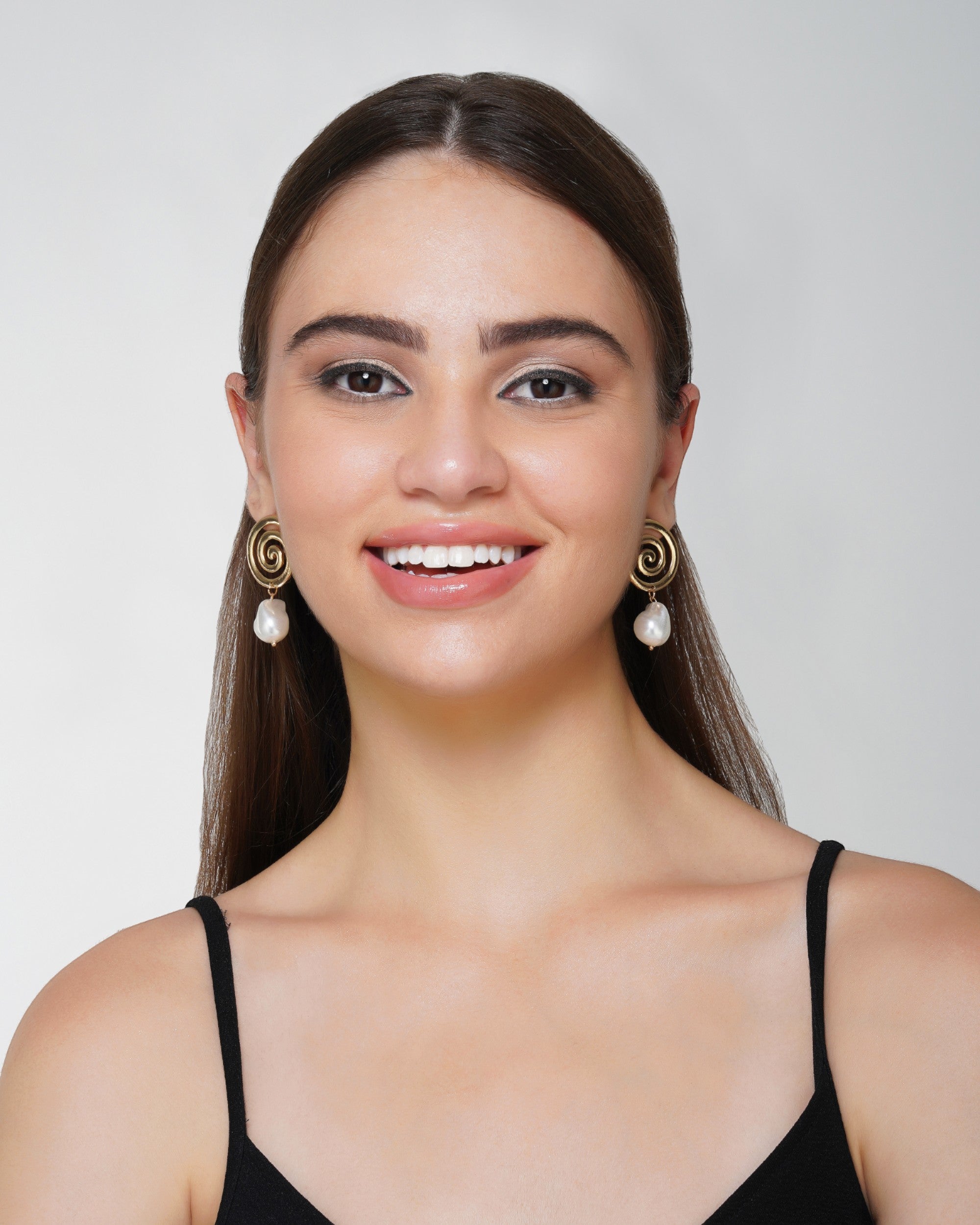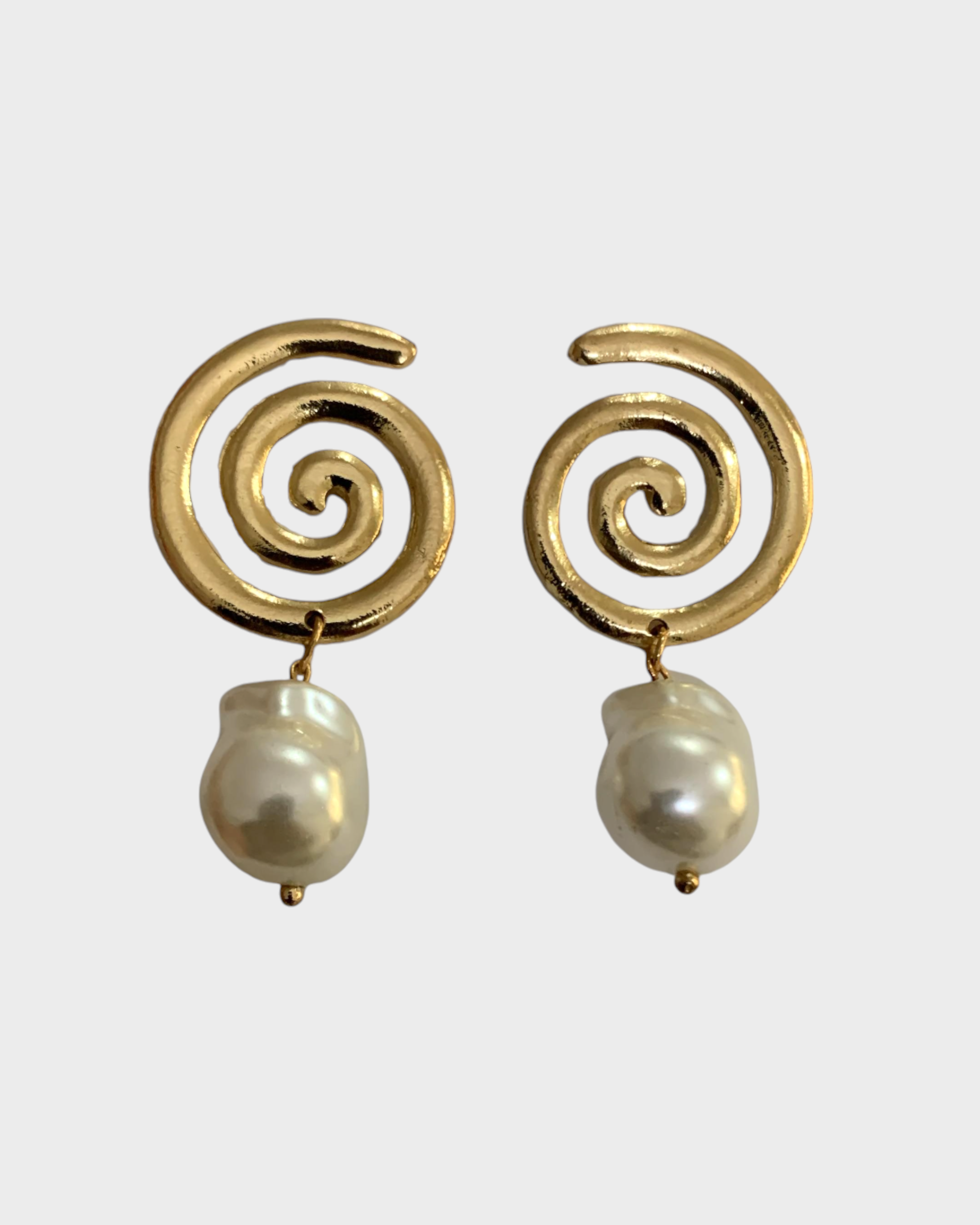 Discover our eye-catching Spiral Earrings featuring pearl bead pendants. With a striking spiral pattern, these earrings demand notice. From elegant evenings out to elevating your daily style, these earrings are guaranteed to make a statement.