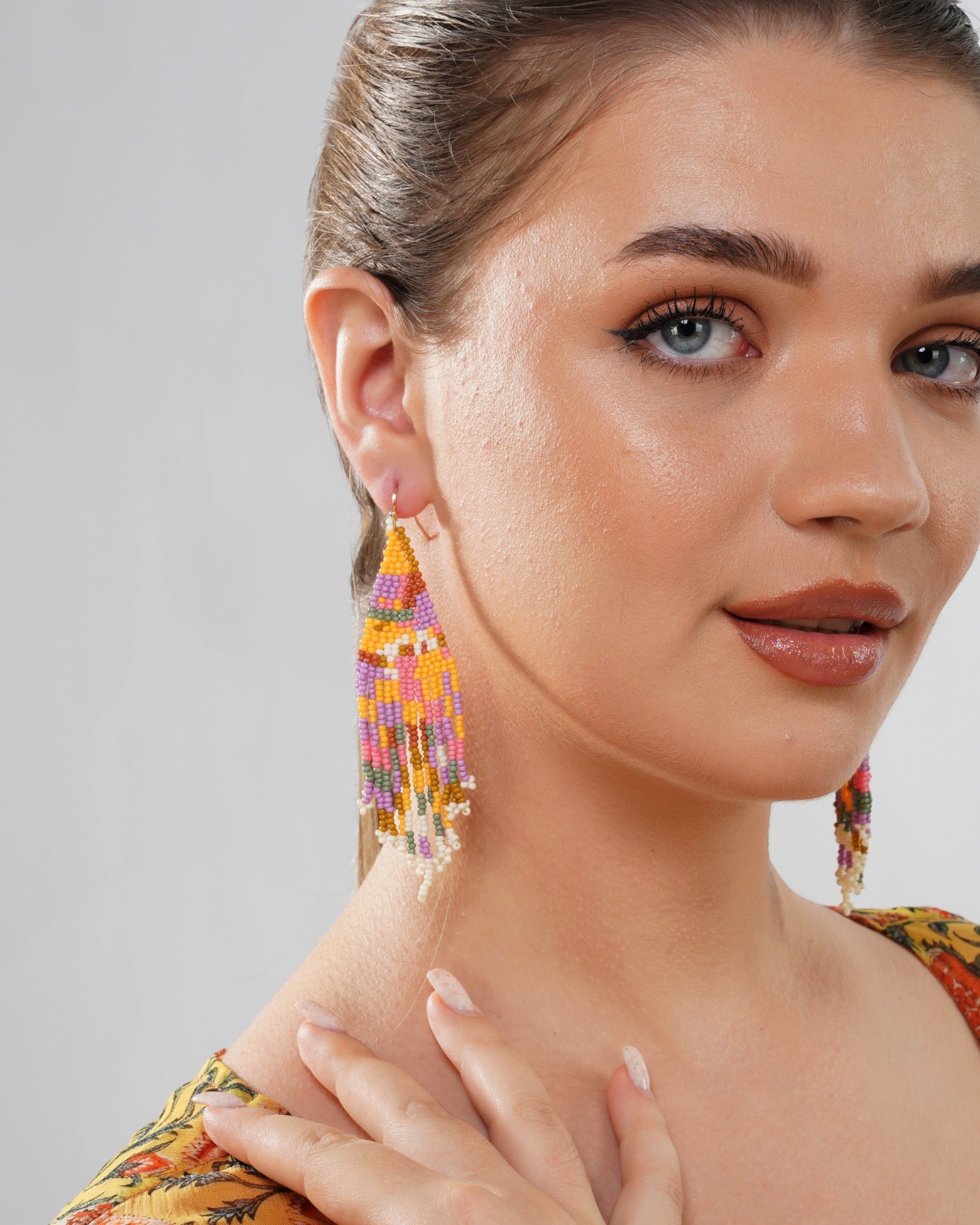 Colorful beaded earrings add a playful touch to any outfit, perfect for showing off your unique style. These versatile accessories can be dressed up or down for any occasion.